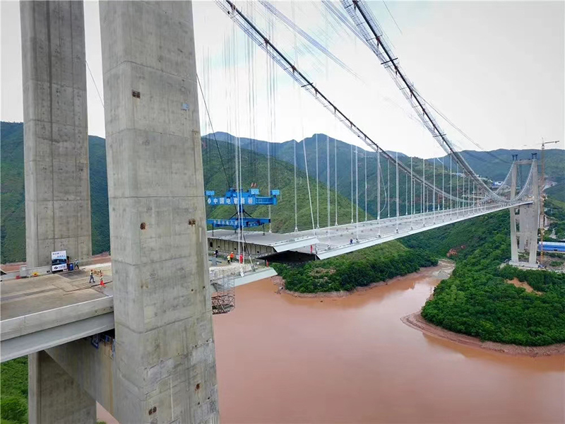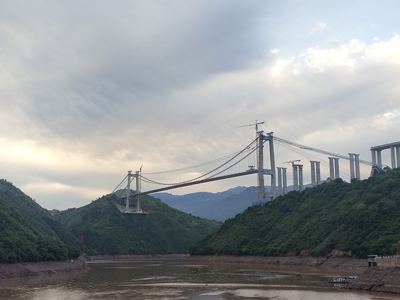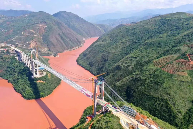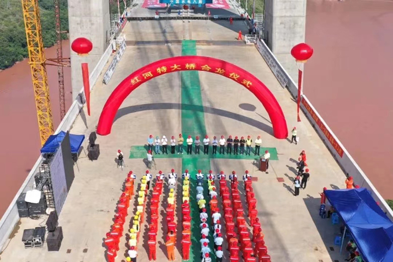 紅河全長1280公里,是一條跨越中國和越南的國際河流。紅河特大橋為跨越紅河南沙水庫而建,是我國首座跨越紅河的高速公路懸索特大橋,大橋全長1366米,其中建水岸引橋長580米,元陽岸引橋長80米,主跨長700米。庫區(qū)水面距橋面高達184米,建水側主塔高181.29米,元陽側主塔高122.5米。2020年9月5日,紅河特大橋主跨成功合龍,標志著全線工程建設取得重大節(jié)點性勝利。